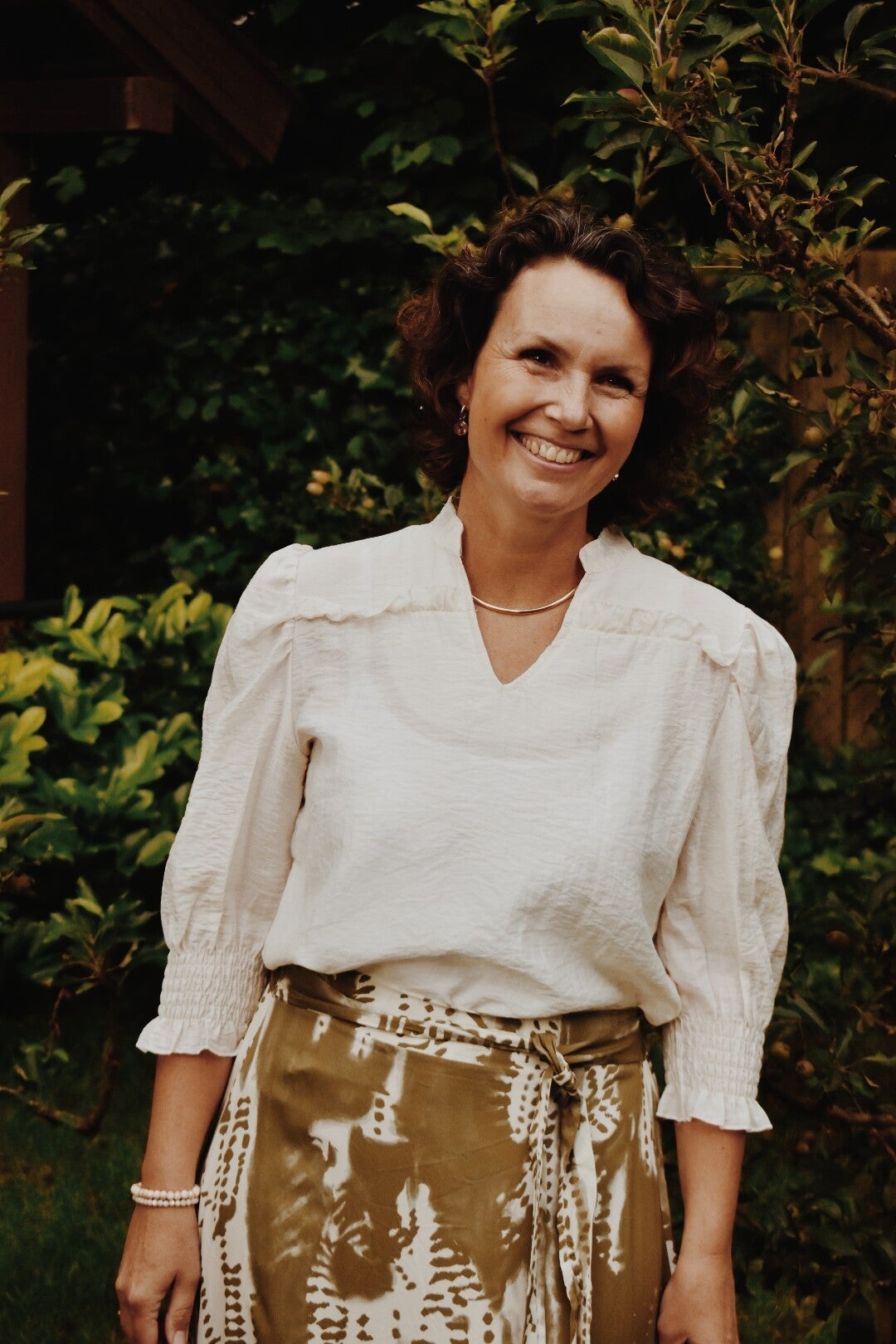 Een leuke blouse met een driekwart mouw. De blouse is leuk te combineren met de army groene rok.