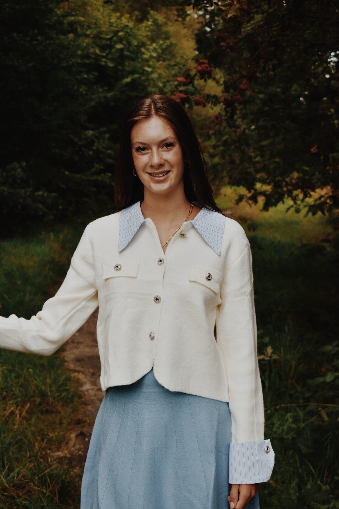 Een leuke trui met blouse details. De trui is one size en draagbaar van een S t/m L.
