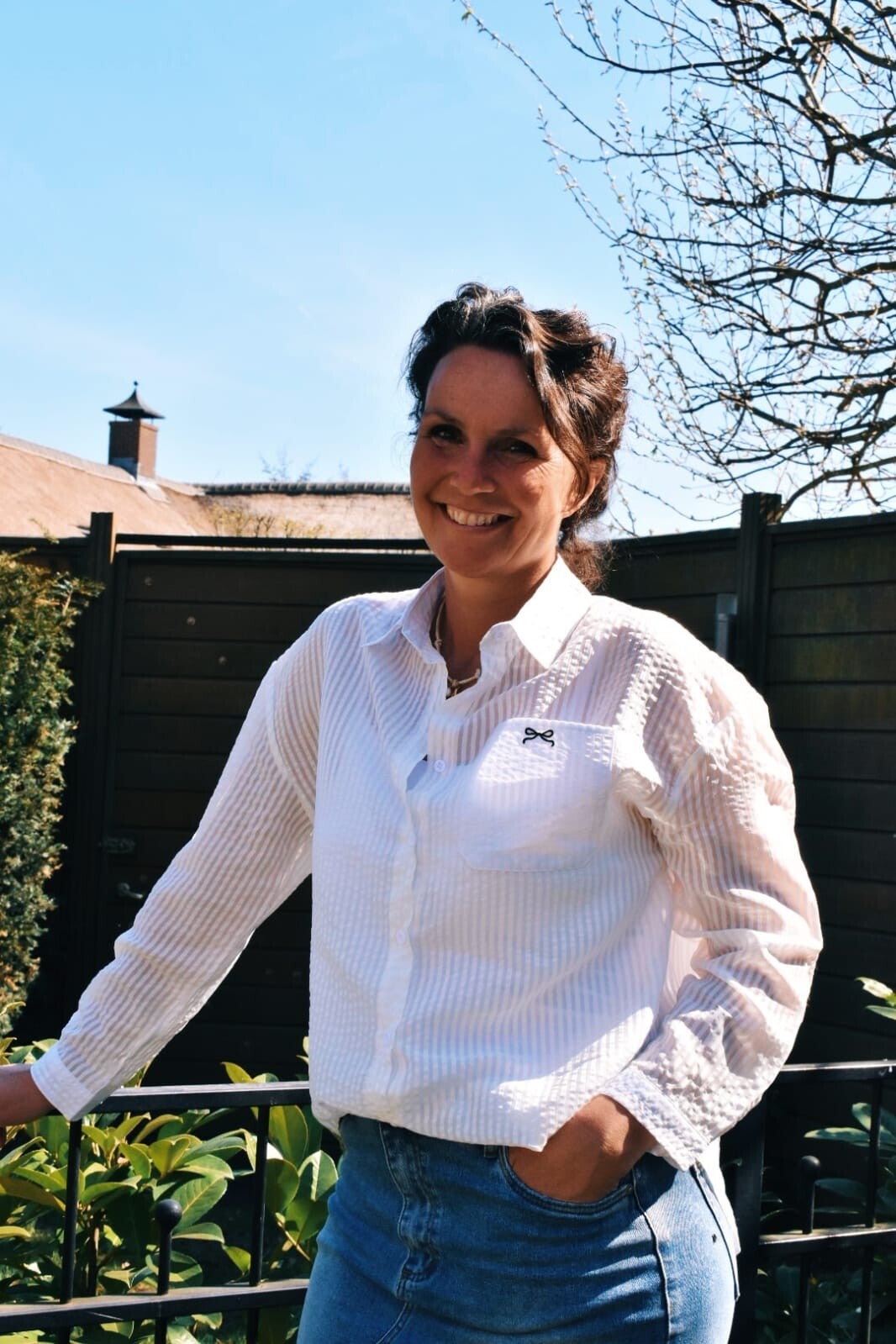 Een heerlijke witte blouse met leuke streepjes als detail. De blouse is verkrijgbaar in een S/M en M/L.