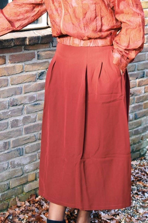 Een mooie rok met aan beide kanten steekzakken. De rok is goed te combineren met de red festive jacket.