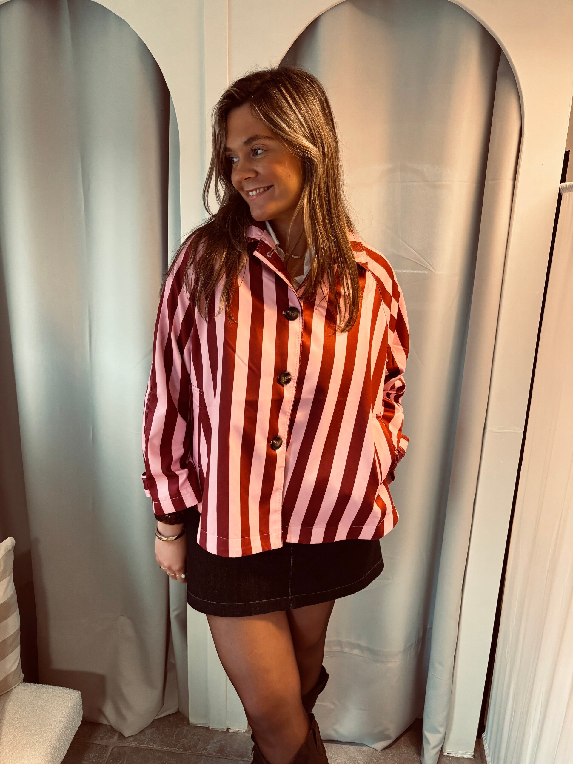 Een super leuke korte trenchcoat die elke outfit gezelliger maakt! De jas is One size en draagbaar van maat s t/m xl.