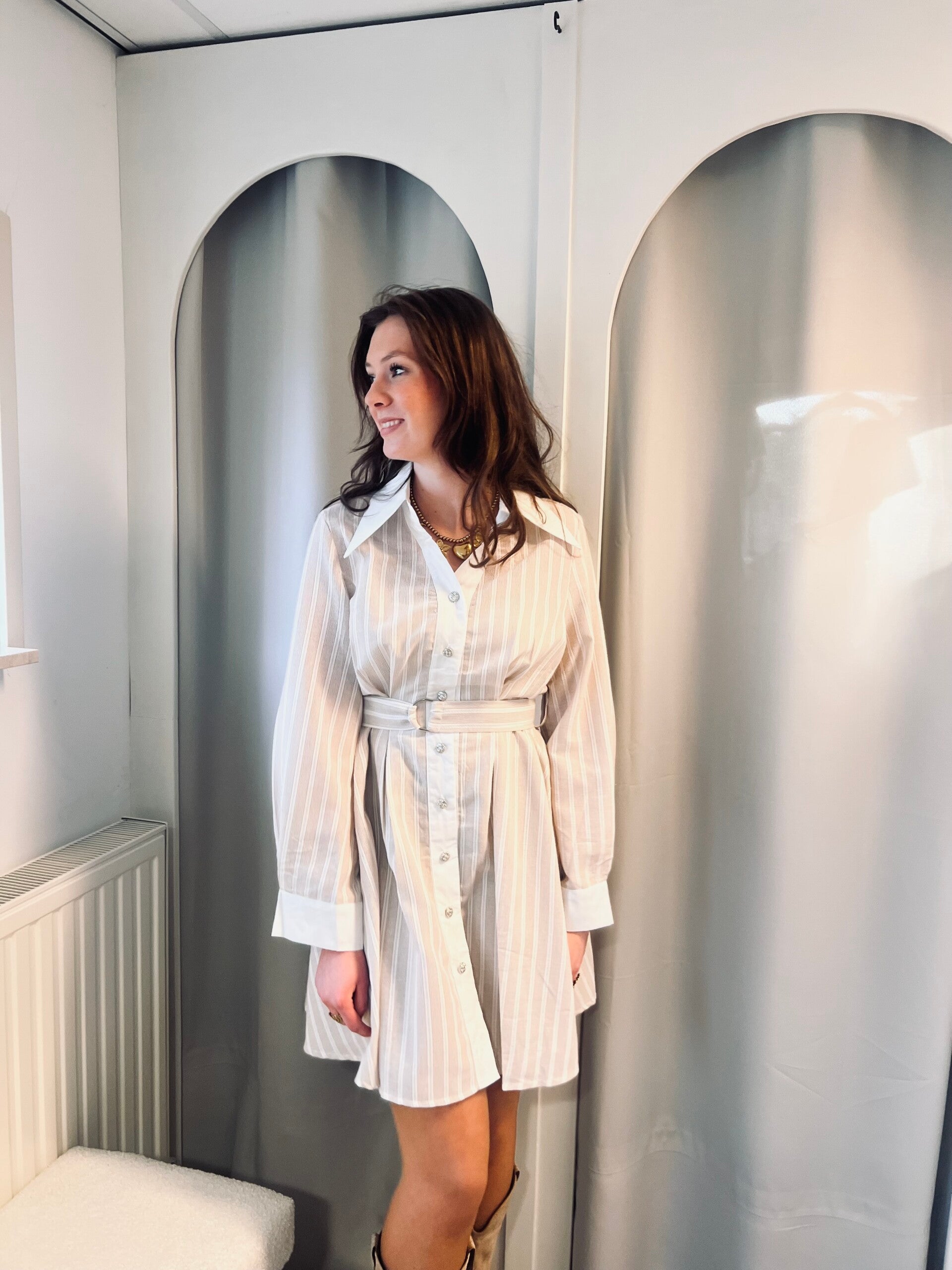 De jurk heeft een mooie lengte en is daarom ook perfect voor de langere dames. De jurk is verkrijgbaar in een S/M en M/L.