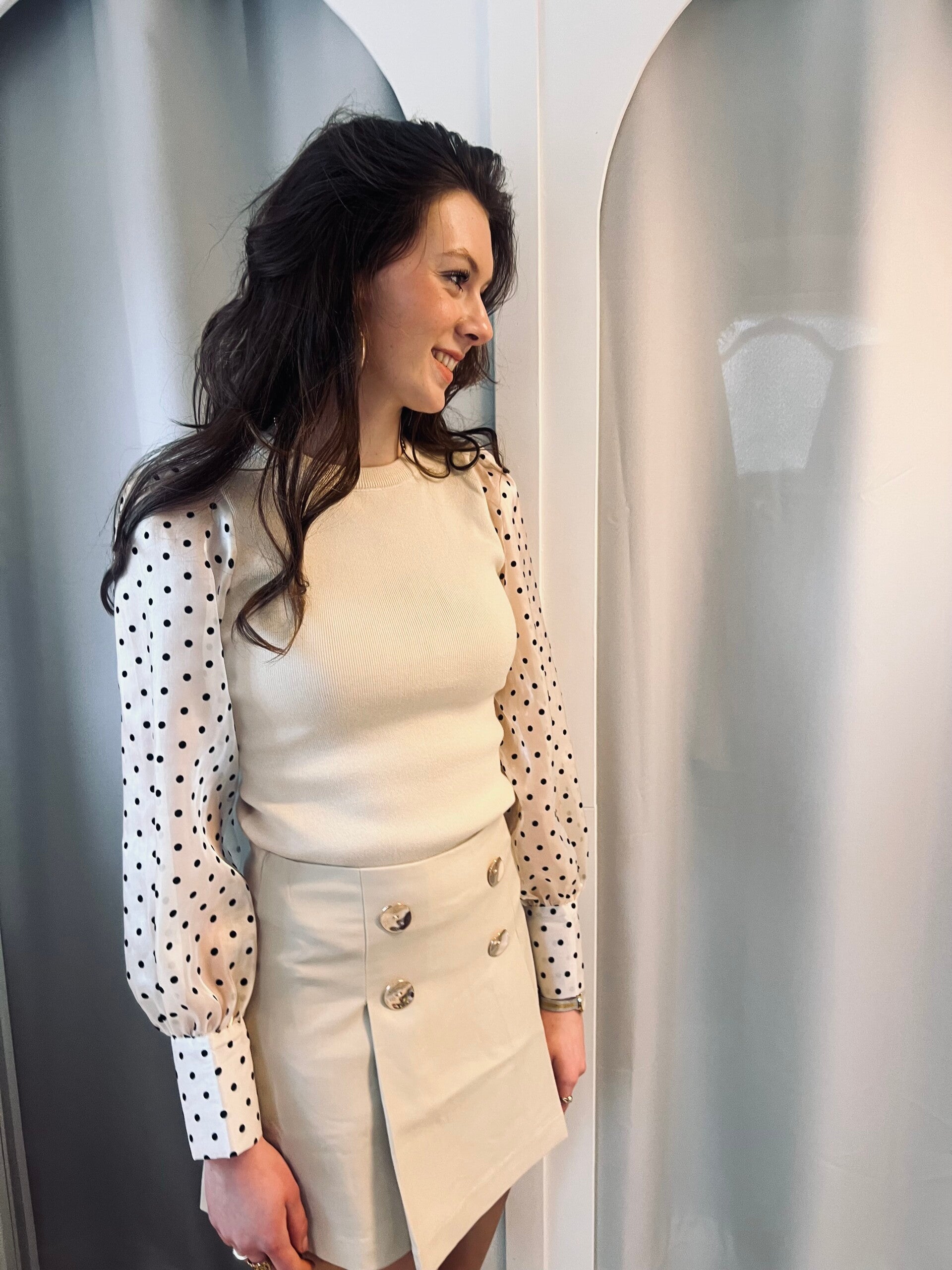 Een super leuk rokje in het beige die overal mee te combineren is. Het rokje bevat een broekje. Ook verkrijgbaar in het grijs.