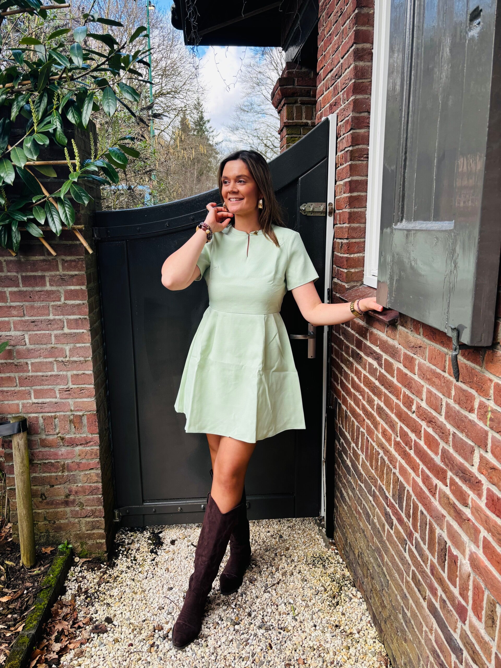 Een super feestelijk jurkje voor bijvoorbeeld een bruiloft. lengte model: 182cm. Lengte jurkje 89cm
